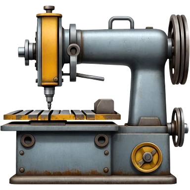 An icon featuring a giant machine tool in a factory workshop, symbolizing mechanical engineering. The design includes gears, levers, and mechanical components, representing the design and manufacturing of machinery. Transparent background highlights the precision emoji
