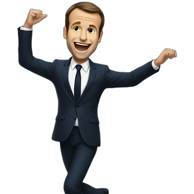 Emmanuel Macron dancing salsa with a pizza on his hand emoji