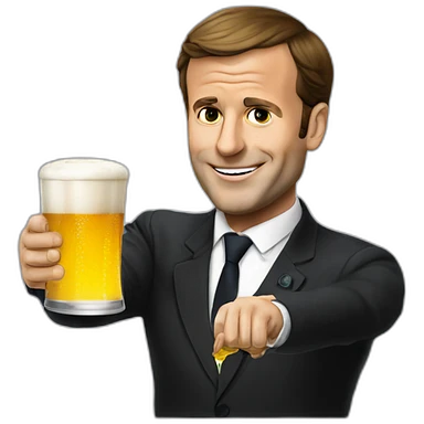 Emmanuel Macron drink a beer on a bike with a goat emoji