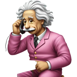 Albert Einstein in simpson style dressed as camrom pink outfit making a phone call on a flip phon emoji