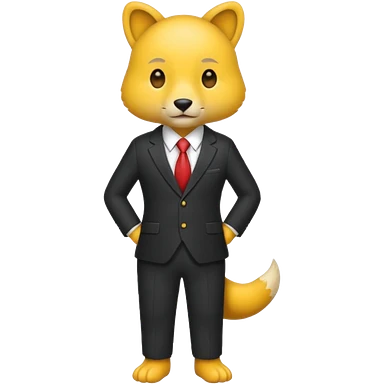 figure of Emmanuel Macron with an oversized head and small body, standing, wearing a dark navy suit and red tie, highly recognizable face, simplified details emoji