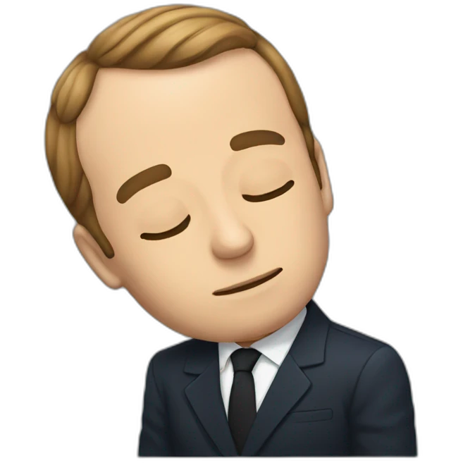 Emmanuel Macron sleeping peacefully, eyes closed, gentle smile, cozy setting, emoji style emoji