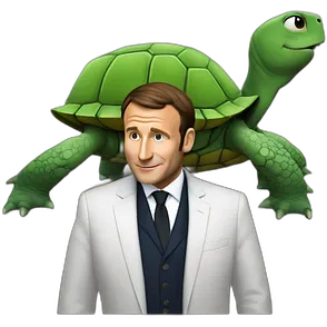 Emanuel macron sur une tortue emoji
