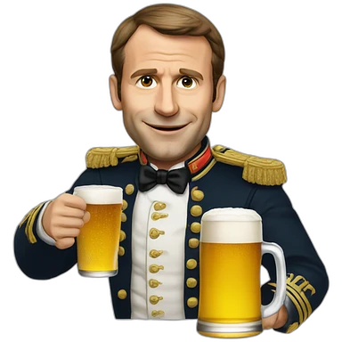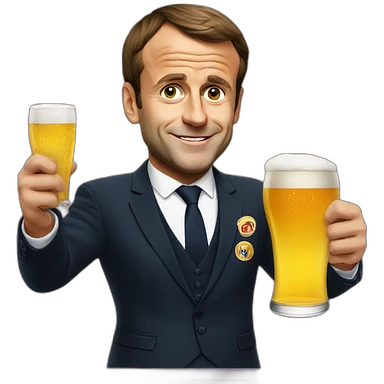 Emmanuel Macron drink a beer on a bike with a goat emoji