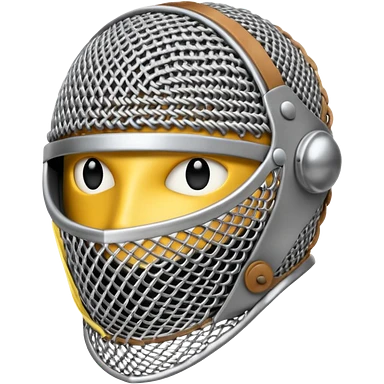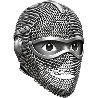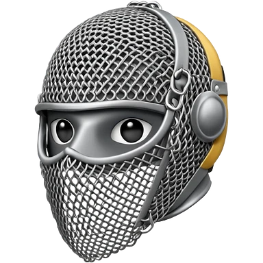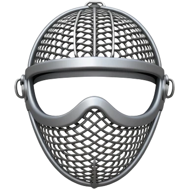 3D render oFencing Mask, made of interlocking chainmail metal rings, wire mesh texture, visible holes and negative space, metallic silver and grey, high contrast shadows, emoji style, isolated on white background --v 6.0. emoji