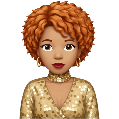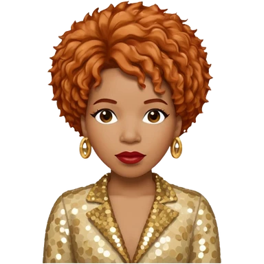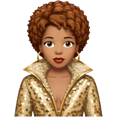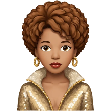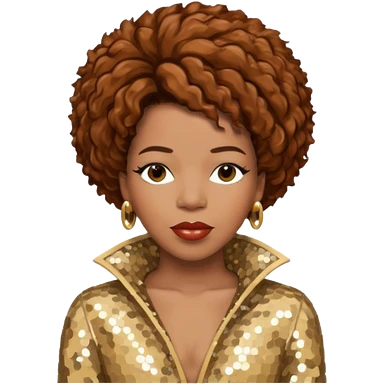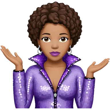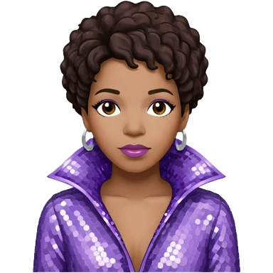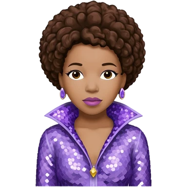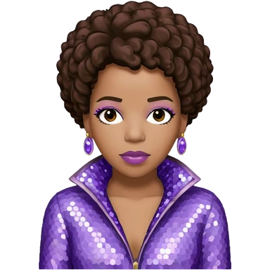 Macy Gray with dark brown hair, pale lavender sequin outfit emoji | AI Emoji Generator