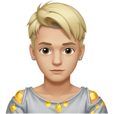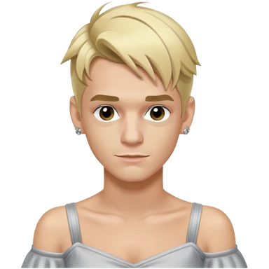 Aaron Carter with blonde hair, silver off-shoulder shirt emoji