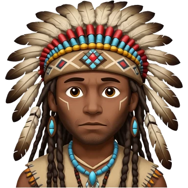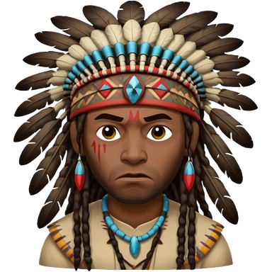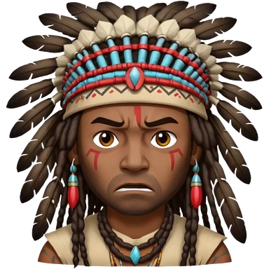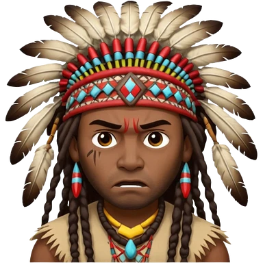 Black American man dark brown with dreads with a American Indian headdress with a mad face emoji