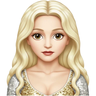 Madonna with long platinum blonde hair, ivory sequin outfit emoji