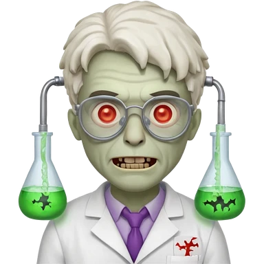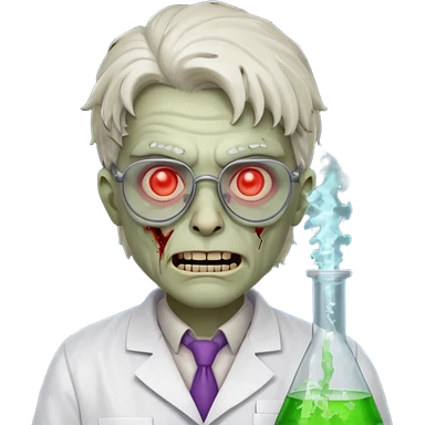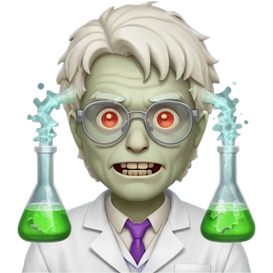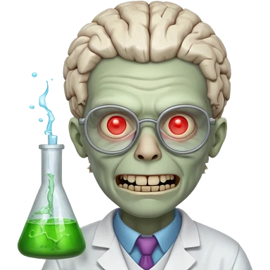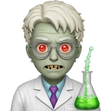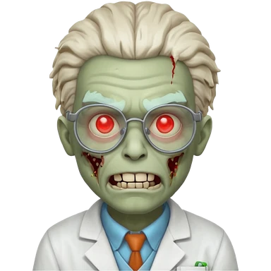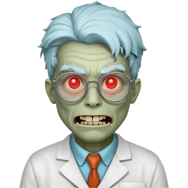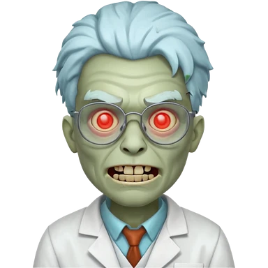 mad experiment zombie scientist portrait, head and shoulders only, exposed brain glow, broken glasses, evil grin, horror lab vibe, 3D cartoon, mobile game icon style, clean background, no text, no watermark emoji