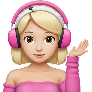 Mädchen mit blondem glattem sehr langem Haar und blauen Ozean Augen und rosanen top ohne Träger und für den Winter und latina make up emoji | AI Emoji Generator