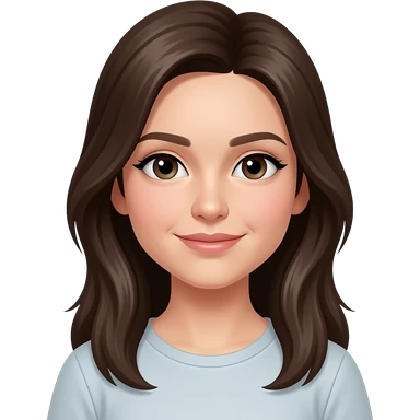 a 26 years old girl with long dark brown hair with res ombre long bangs, dark brown eyes emoji