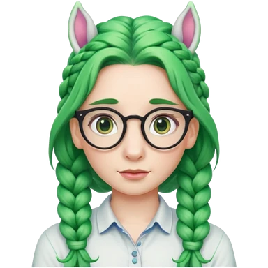 braided unicorn wiith big visible braids looking into the camera spectacled green hair emoji