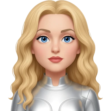 Madonna with blue eyes, long blonde hair, white metallic outfit emoji