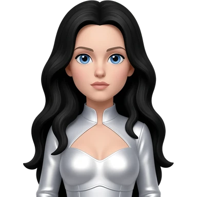 Madonna with blue eyes, long black hair, white metallic outfit emoji