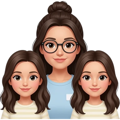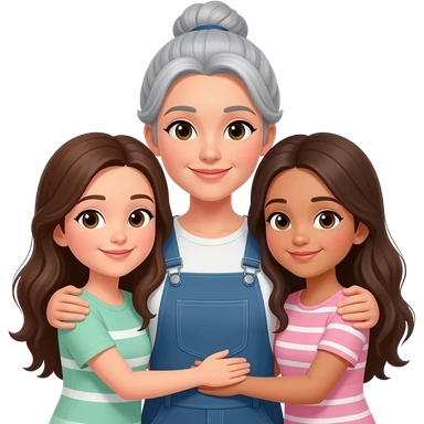 Madre con canas y moño y dos hijas pelo largo 13 y 15 años abrazadas emoji | AI Emoji Generator