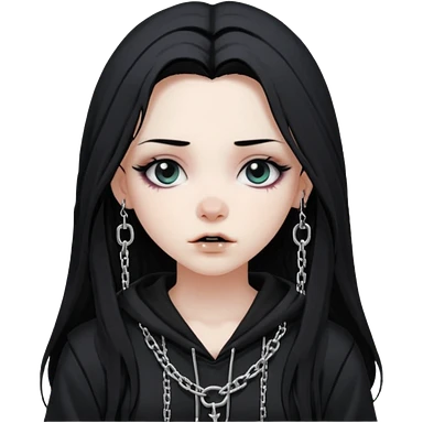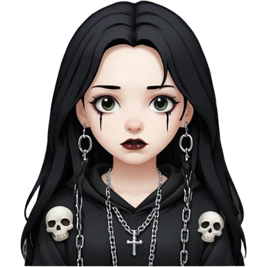 Female Goth with Beanie Messy long hair, white skin, oversized black hoodie, chain accessories. emoji