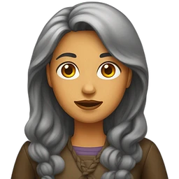 Terapeuta holistica, mujer muy madura con lentes y cabello negro hasta los hombros emoji