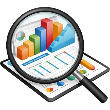 Checking and auditing estimate documents with search icon and infographic chart emoji