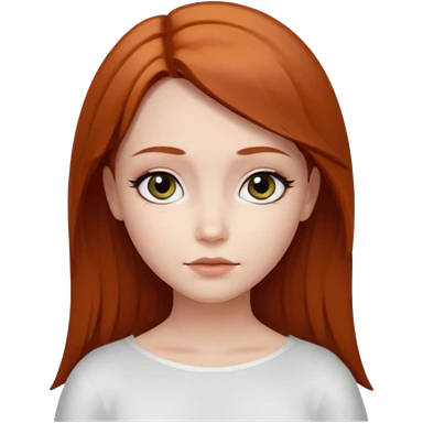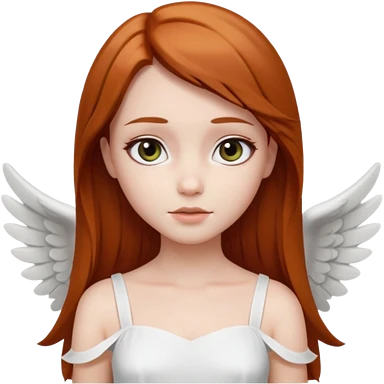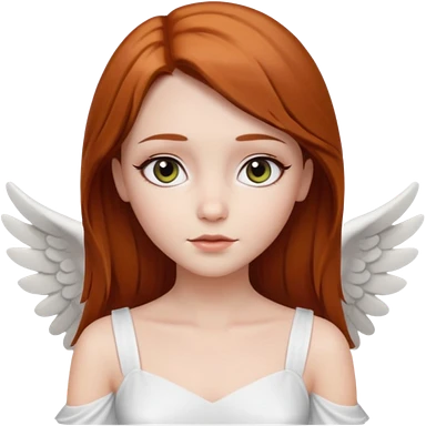 девушка ангел с рыжими прямыми волосами по плечи, с черными макияжем глаз, тонкими бровями, в стиле Apple avatar emoji