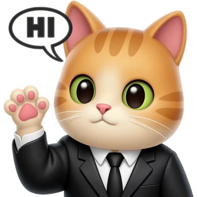 corleone mafia cat, said HI, with text HI, only face and hand up emoji