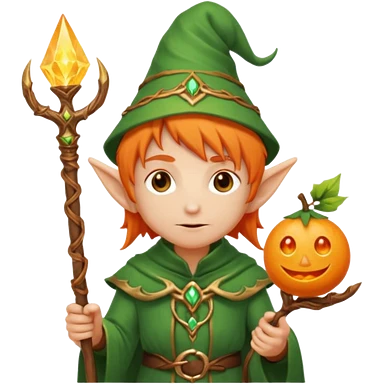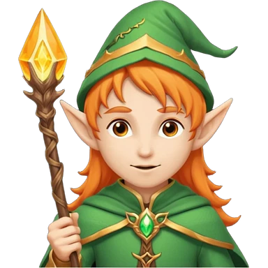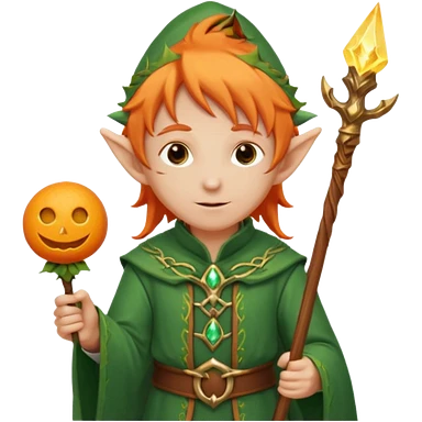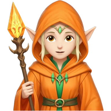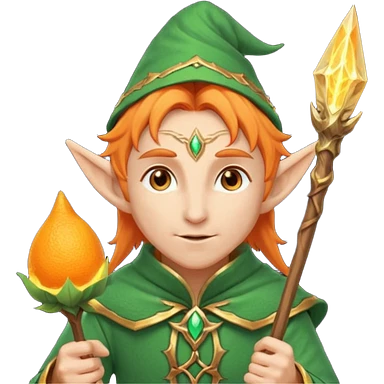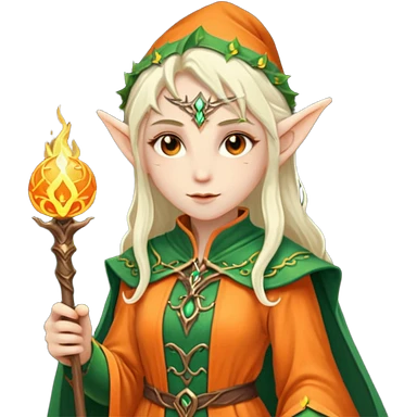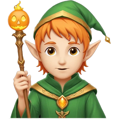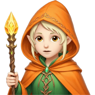 Mage elf with glowing orange staff emoji | AI Emoji Generator