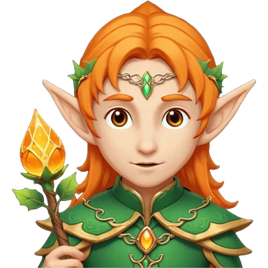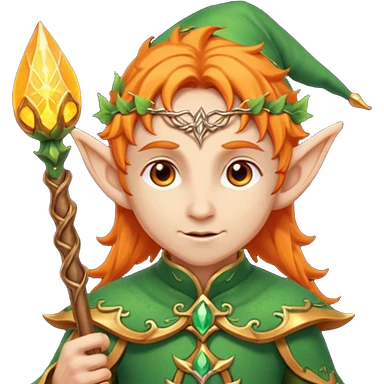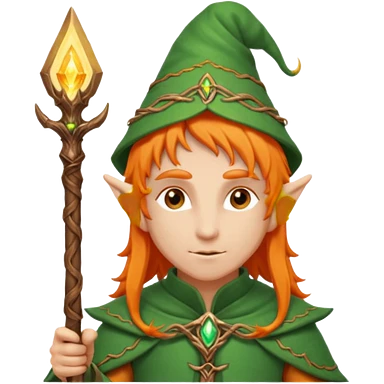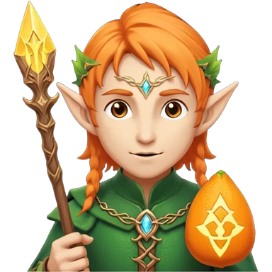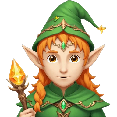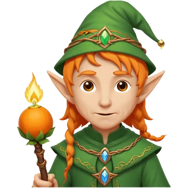 Orange Haired Elf, old Mage elf with glowing orange staff emoji