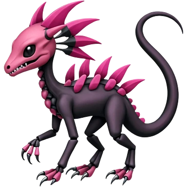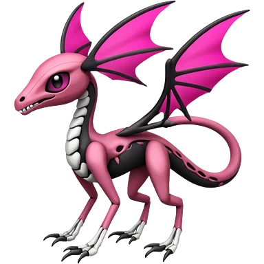 Magenta, black and white skeletal Meloetta-Flygon-Gorebyss-Salazzle-Pokémon-Fakémon-creature-fusion-hybrid emoji