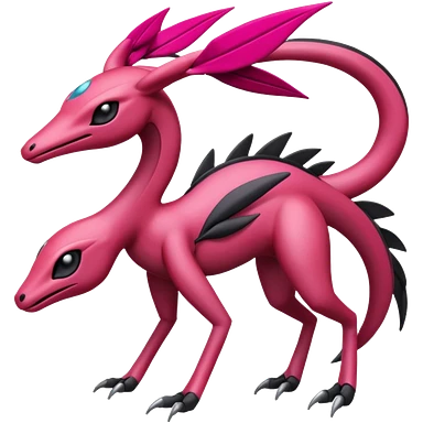 Magenta, black and white Flygon-Gorebyss-Salandit-Rayquaza-Pokémon-Fakémon-creature-fusion-hybrid emoji
