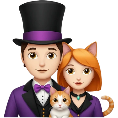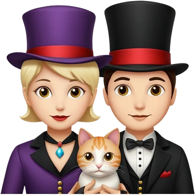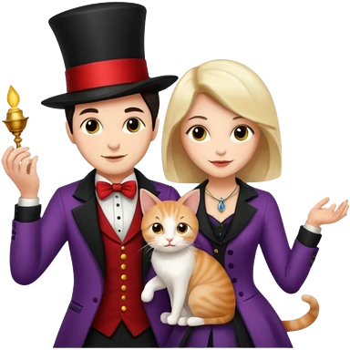 magician couple and their pet cat emoji