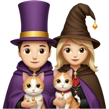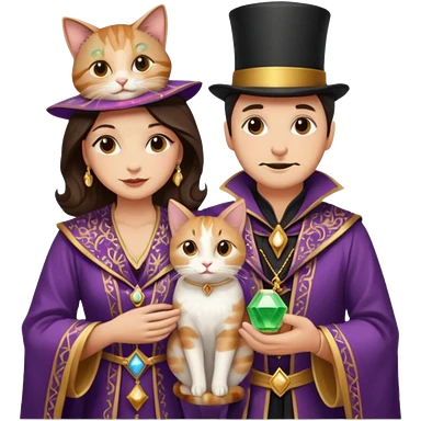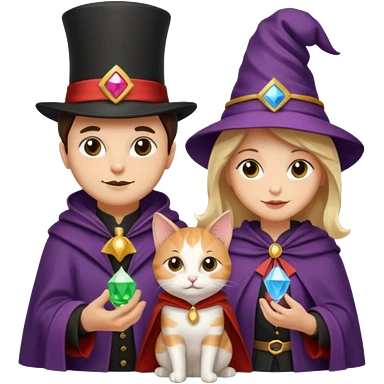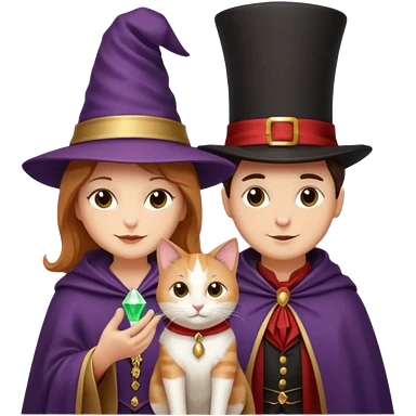 magician couple and their pet cat emoji