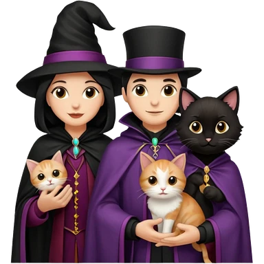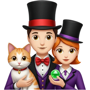 magician couple and their pet cat emoji