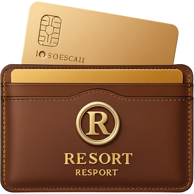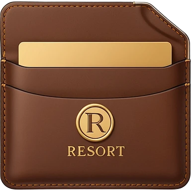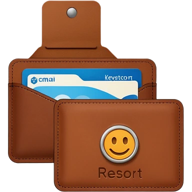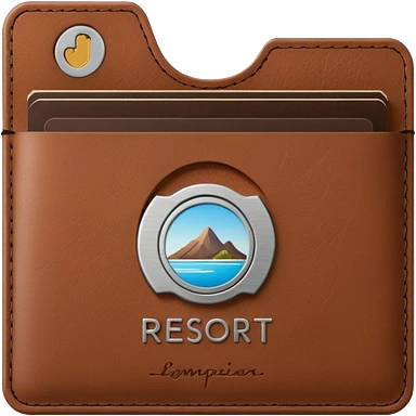 Resort Keycard & Holder: A sleek magnetic keycard paired with a leather card holder embossed with the resort logo. emoji