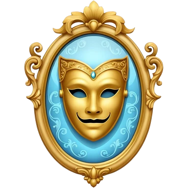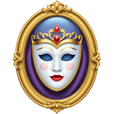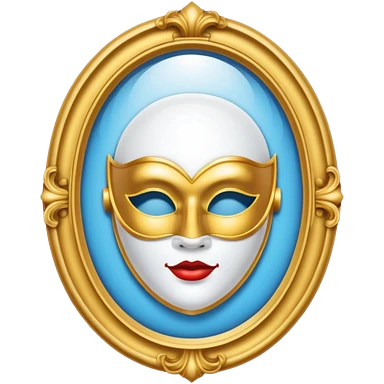 magic mirror on the wall from snow white. This is an oval mirror with golden borders with a white theater mask inside emoji