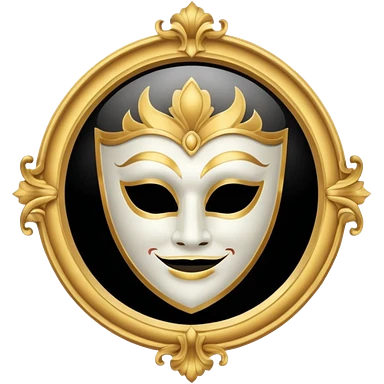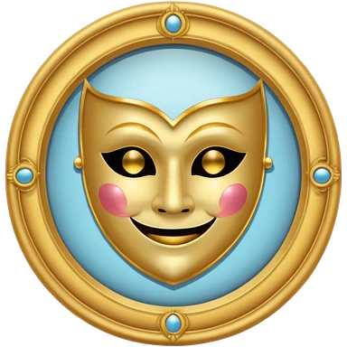 magic mirror on the wall of snow white. This is a round mirror with golden borders with a white theater mask inside emoji