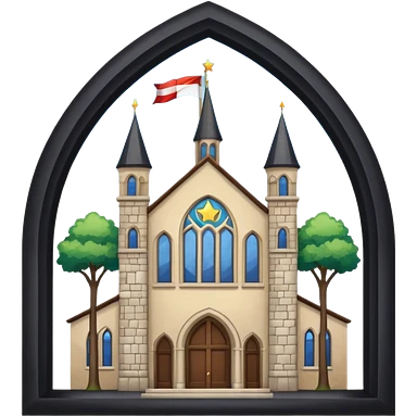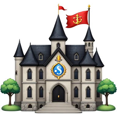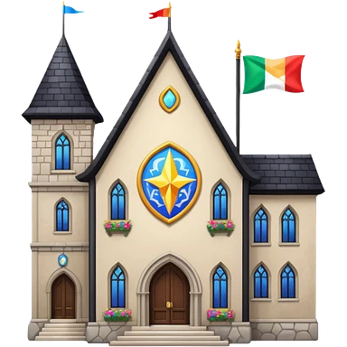 magic school, with a flag, flag on a roof emoji