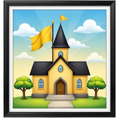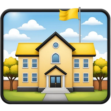 magic school, with a flag, flag on a roof, yellow flag, white school emoji