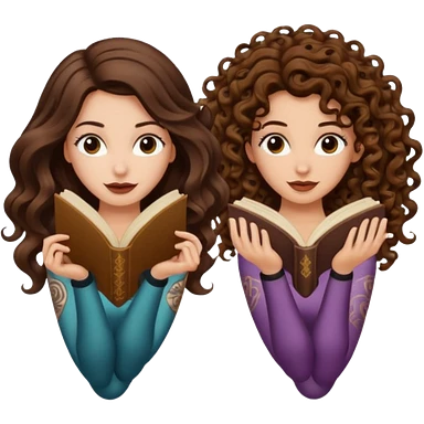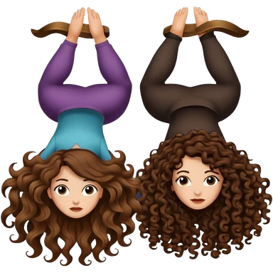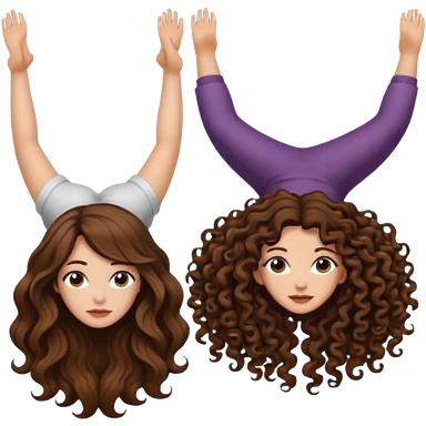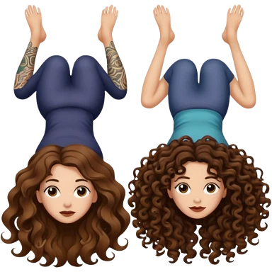 spell confusion — long wavy brown hair tattooed woman and short tight curly brown hair woman — scroll upside down emoji