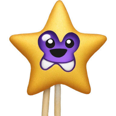 Very small fluffy cutty dog, for profile, look front, holding magic stick emoji