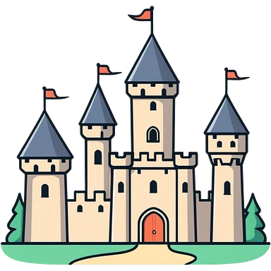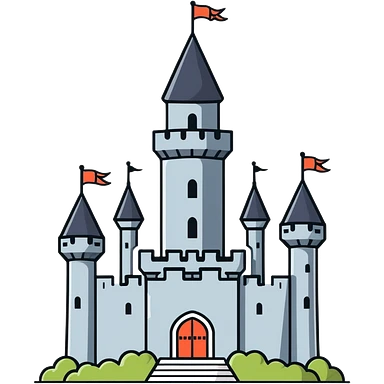 Dragon lair in an ancient castle ruins with magical crystals emoji