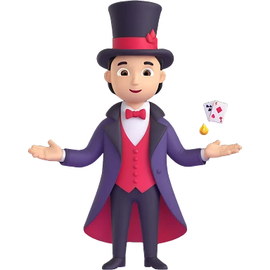 A magician cat in a top hat, a bowtie and a purple cape with stars emoji