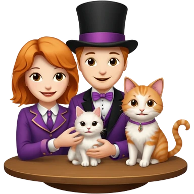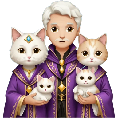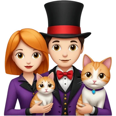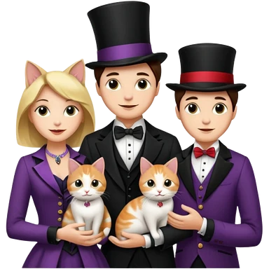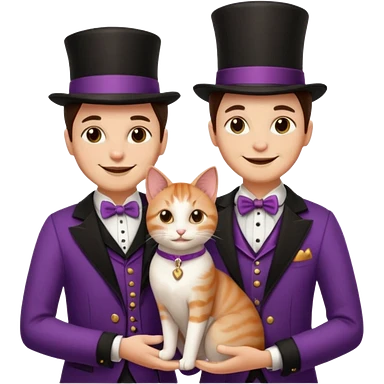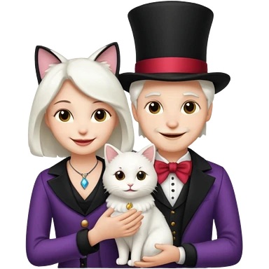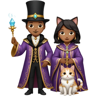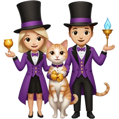 A magician cat in a top hat, a bowtie and a purple cape with stars emoji