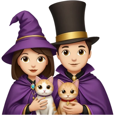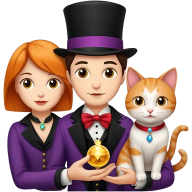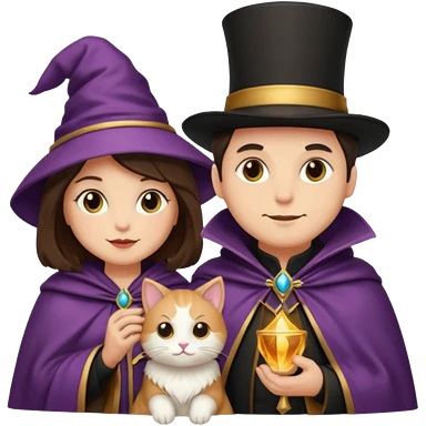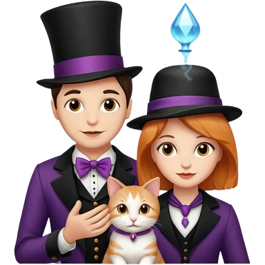 magician couple and their pet cat emoji | AI Emoji Generator