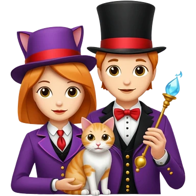 magician couple and their pet cat emoji | AI Emoji Generator