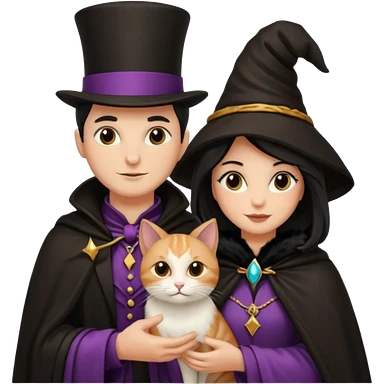 magician couple and their pet cat emoji | AI Emoji Generator