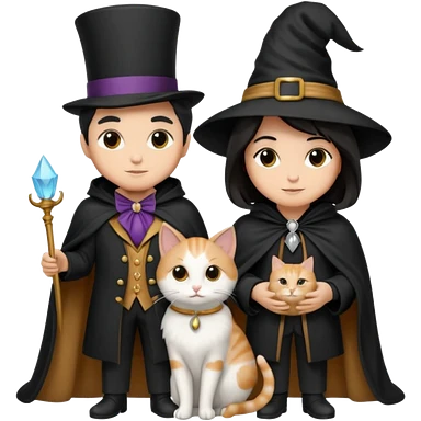 magician couple and their pet cat emoji | AI Emoji Generator