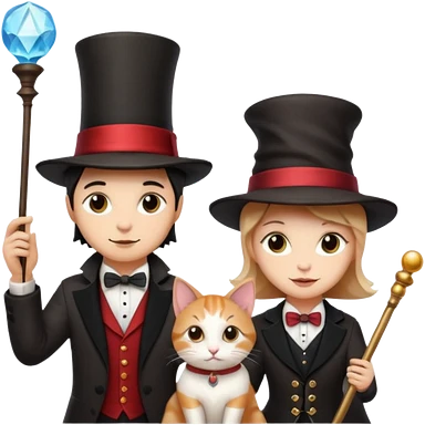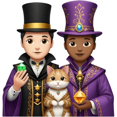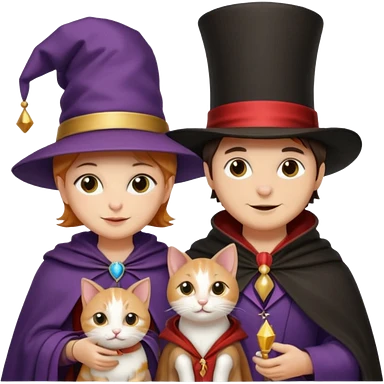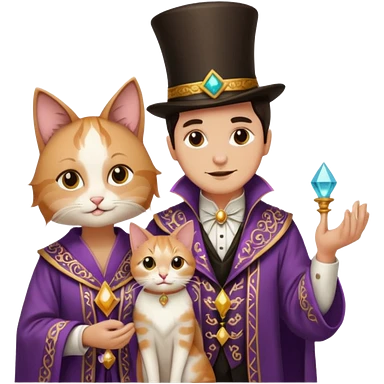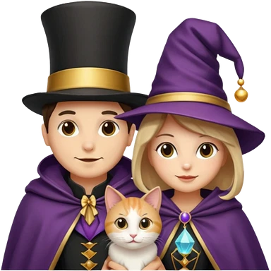 magician couple and their pet cat emoji | AI Emoji Generator