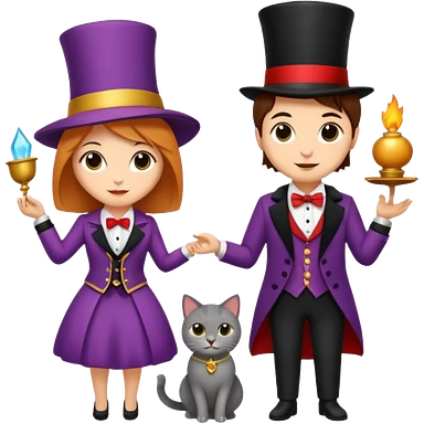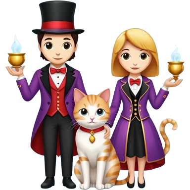 magician couple and their pet cat emoji | AI Emoji Generator