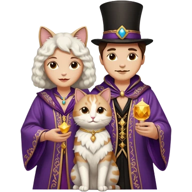 magician couple and their pet cat emoji | AI Emoji Generator