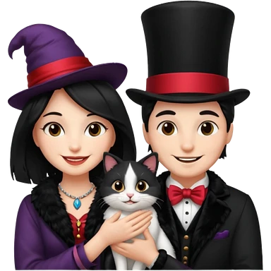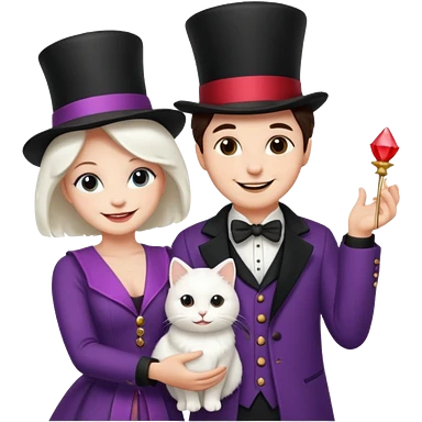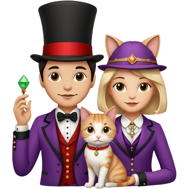 magician couple and their pet cat emoji | AI Emoji Generator